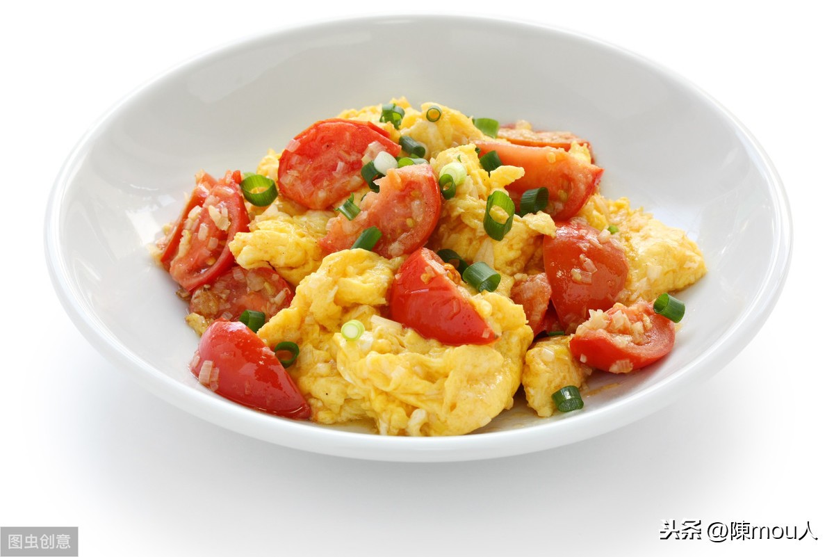 2, 蛋液炒定型后下番茄,炒熟后调味即可。
