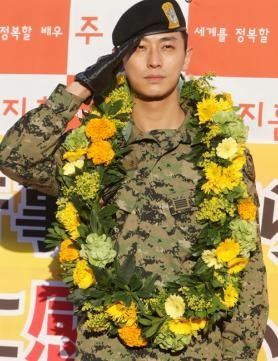 不得已的朱智勋在2010年2月入伍,一个是履行国民义务,另一个就是自我反省,希望能以全新的形象重新出现。虽说丑闻缠身,但不得不说朱智勋以前的良好形象为他赢得了很多死忠的支持者,在入伍当天又300多名粉丝涌至军事训练所门口,其中还包括了从日本远道赶来欢送偶像入伍的日本粉丝。
