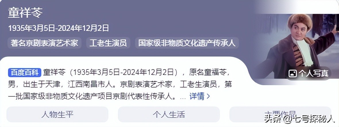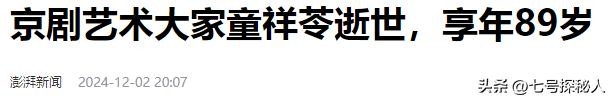 知名的京剧艺术家童祥苓在2日于上海去世,享年89岁。