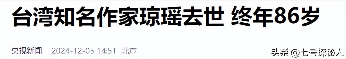 台湾知名作家琼瑶去世 终年86岁 央视新闻2024-12-05 14:51北京