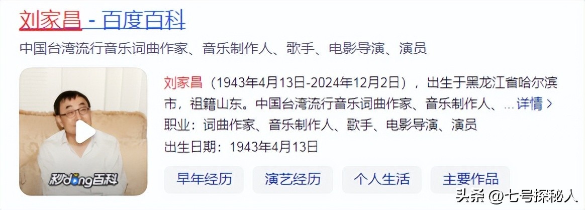 坚持治疗却没有等来一个好的结果,12月2日刘家昌因癌症去世的消息正式公布。