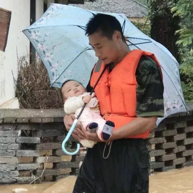 消防员杨科璋转移一岁半的小女孩时,