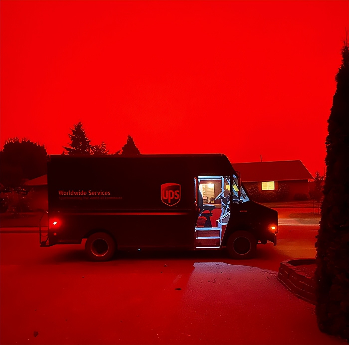 我住的地方周围的野火冒出的烟雾把太阳变成了红色