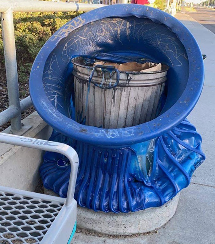 艾伯塔省埃德蒙顿。太热了,我们的塑料垃圾桶正在融化