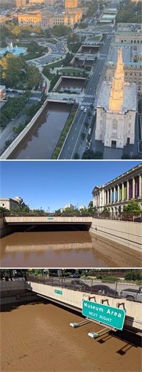 2021 年 9 月 2 日飓风艾达过后的费城藤街高速公路
