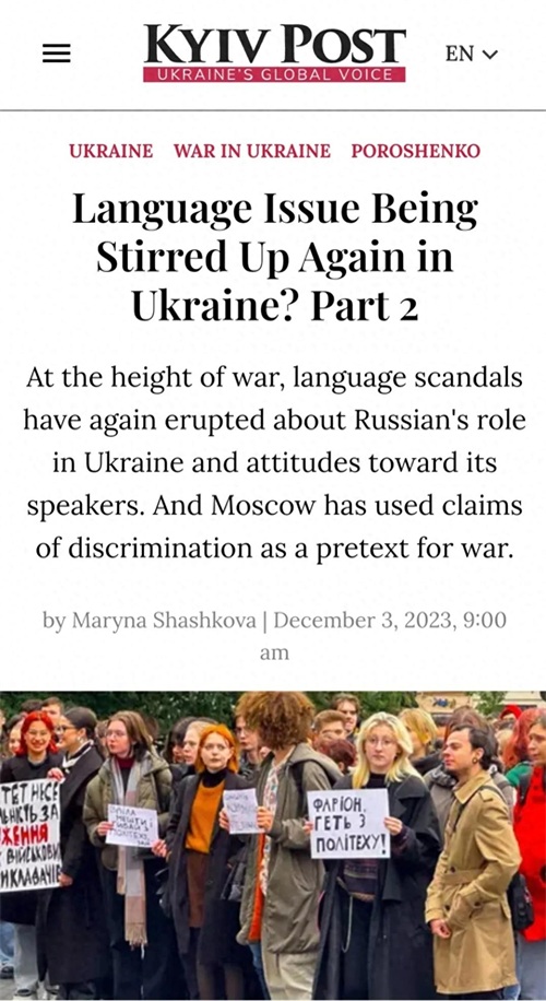 乌克兰《基辅邮报》官网12月3日发布了题为:(乌克兰再次掀起语言问题?)的文章。