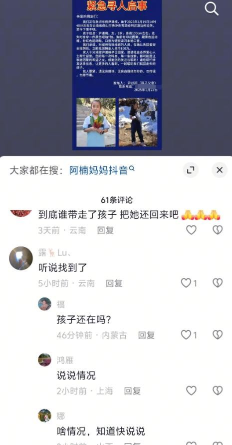 就在网友猜测不停的时候,一位云南当地网友在评论区留言:孩子已经找到了......