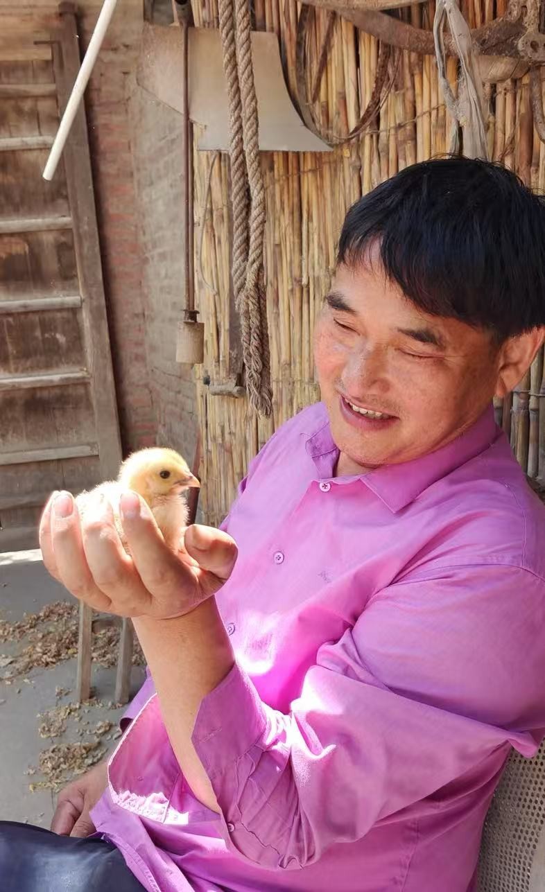 朱之文在家中照看出生不久的小鸡。受访者供图