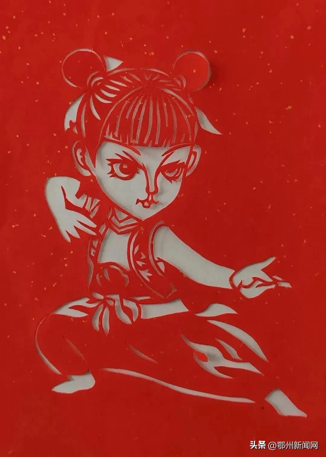 若说土布编织着华容的乡土记忆,那么雕花剪纸则刻画出这片土地的文化灵韵。随着电影《哪吒之魔童闹海》的热映,华容区非遗传承人杨亮以剪纸为媒介,将经典神话形象融入传统技艺,创作出一系列“哪吒”主题剪纸作品,为古老的艺术注入了新的活力。