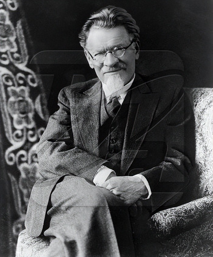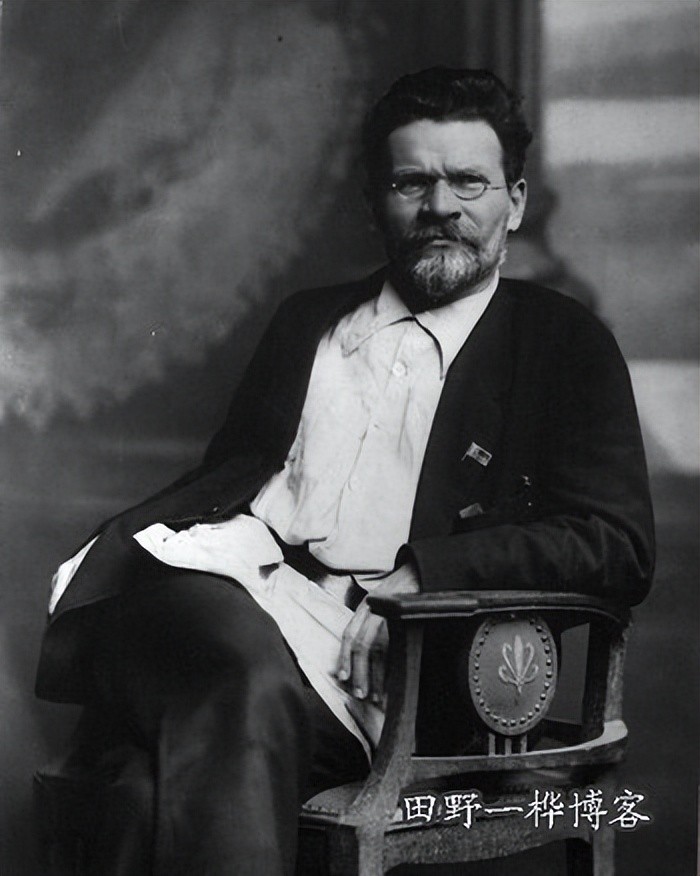 这是他较年轻时的一张画像,也已不年轻了,他早年在彼得堡的工厂里工作,1891年就投身革命