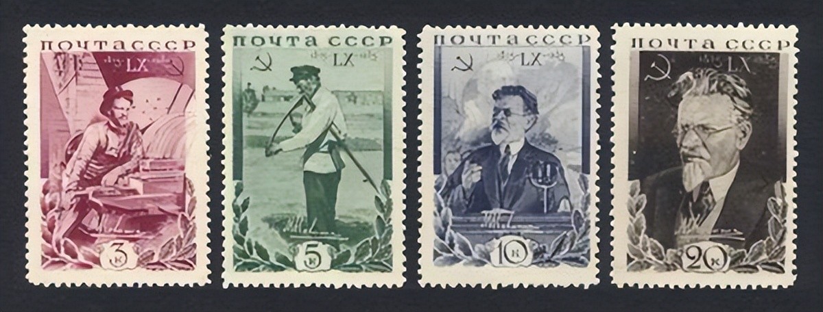 1935年,苏联邮政发行的加里宁纪念邮票一套四张(四种面值)