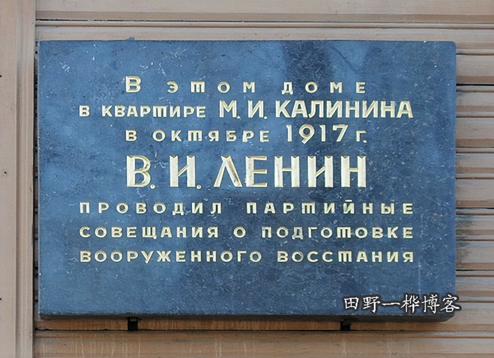 这是彼得堡加里宁曾住过的公寓的纪念标牌,1917年10月,列宁曾在此策划过武装起义