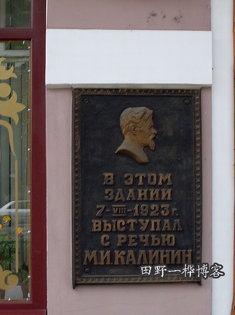 在哈巴罗夫斯克的一幢楼房外的纪念标牌,1923年,加里宁曾在这幢房子的阳台上发表过演讲