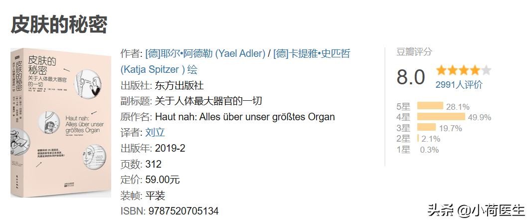 经验丰富的作者将这些知识以浅显易懂的样貌呈现出来,并配有俏皮的小插图,帮助我们轻松get皮肤构造及运转机理,从此拥有健康的皮肤乃至身体。