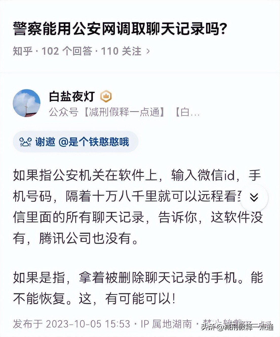警察可以通过公安网,调取或者远程查看每个人的微信聊天记录吗?请看下图这位女士的疑问。