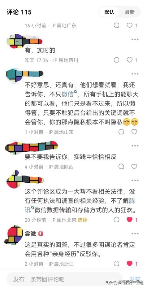 所谓的远程监控,远程可以查到个人的微信聊天记录,都不过是网名的脑补。宪法赋予公民享有绝对的隐私权,这是不需要质疑的。当然,在群聊以及各平台发言,均属于网络公共空间,是要遵守网络空间的规定。