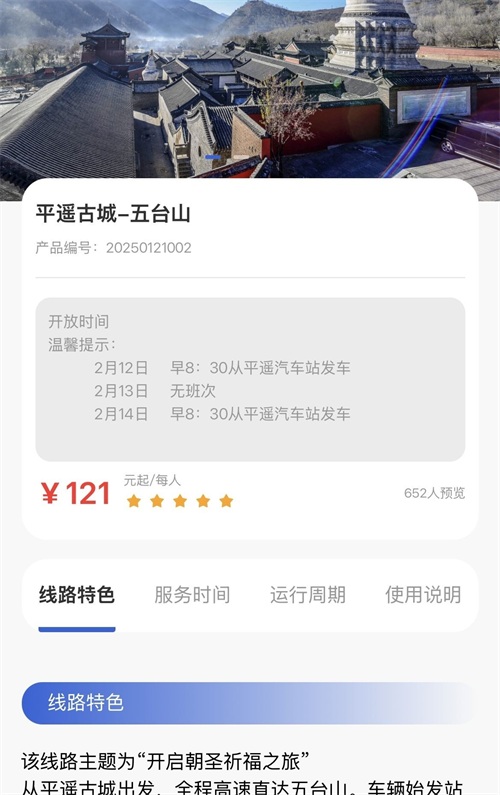 咱先不说别的,平遥古城到五台山的班车票价更是离谱,121元!是石家庄的4倍,太原的2倍多!这价格,谁坐得起?山西的旅游部门,你们心里没点数吗?