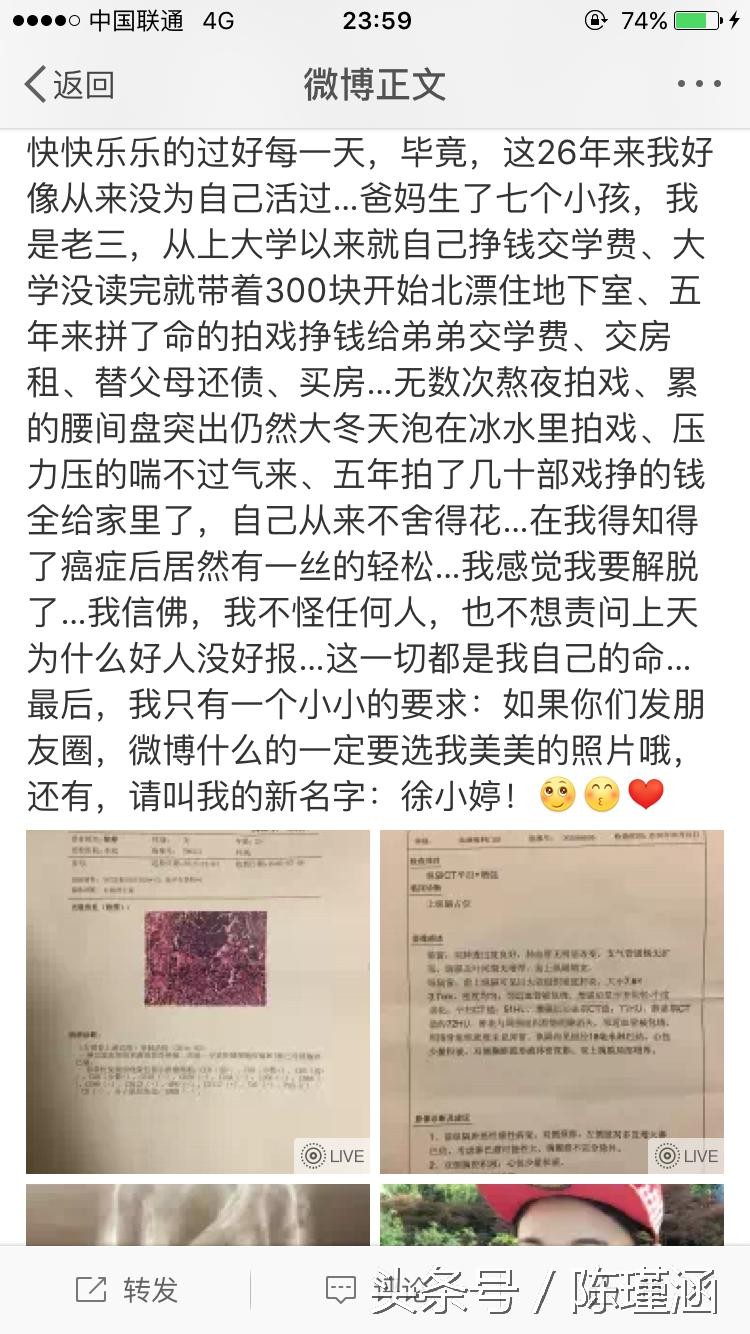 90后演员徐小婷患癌去世,生命永远定格在了26岁