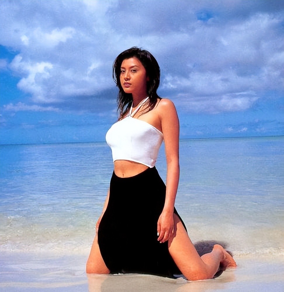 藤原纪香穿着白色吊带衣裳,搭配黑色长裙,她跪在海边沙滩上,大秀自己的香肩和小蛮腰,一双修长的大美腿,尽显凹凸有致的魔鬼身材,绝对性感火辣!