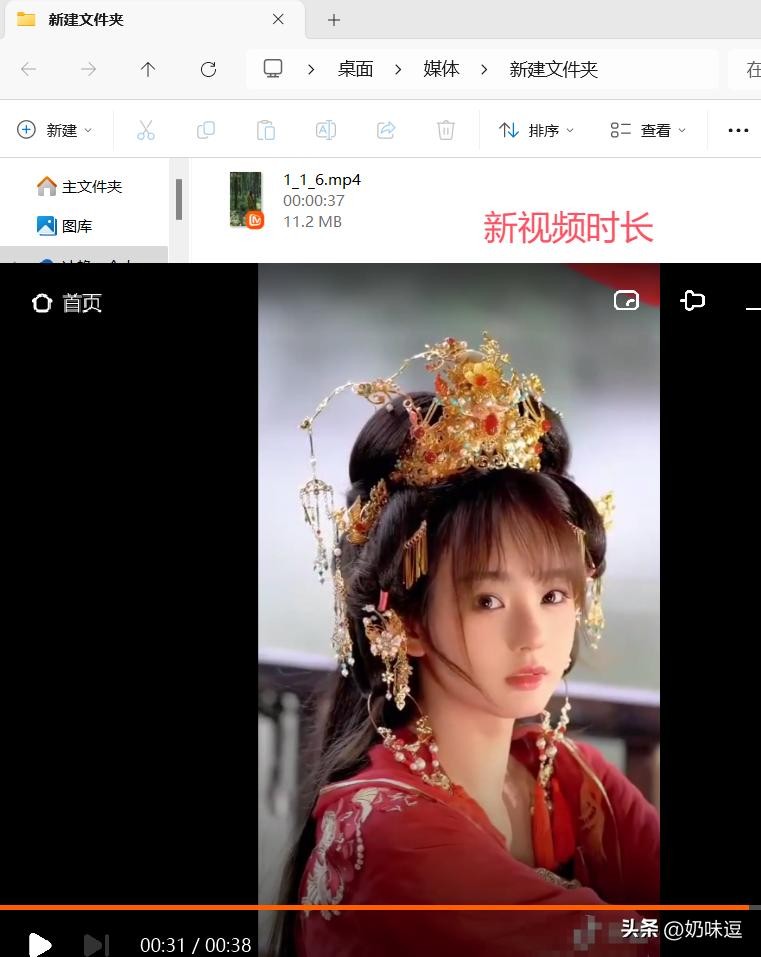 10.完成之后,双击新视频查看,都可看到视频画面内容各不相同,且播放时长较长,与原视频相比,原视频时长较短,画面内容一致,说明合并成功