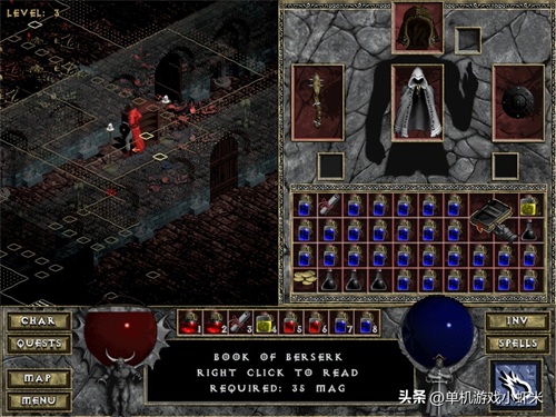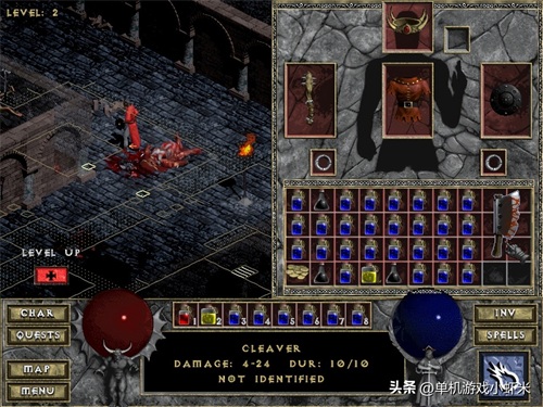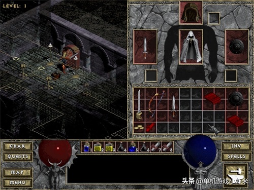 《暗黑破坏神1》的地下城是随机生成的,一共有16层,每层都会有不同的布局和怪物遭遇。玩家不仅可以在地下城中发现隐藏的宝箱,还有很多秘密房间和神庙等元素等待玩家发掘。这种设计让游戏的可玩性大幅提升,也让玩家每一次开新地图都会有不同的冒险体验。