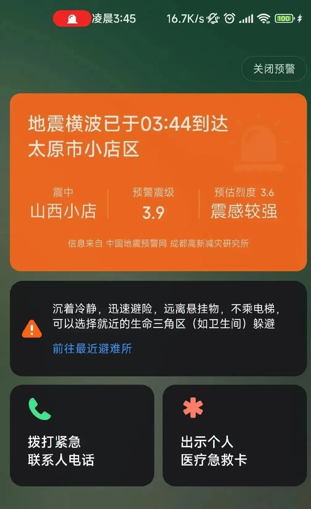 11月30日清徐县突发3.7级地震,震中区域震感明显,太原消防各站组织力量进行排查,初步排查结果,房屋无裂缝,暂无人员伤亡。