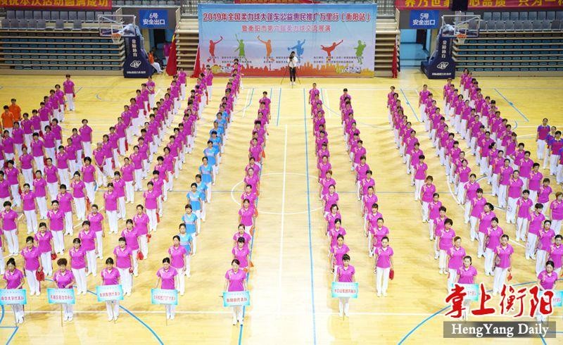 掌上衡阳客户端5月21日讯(记者 文/郑淑香 图/王翟)伴随着舒缓的音乐,小球凌空飞起,球拍顺着小球下落的方向,划出一条弧线,兜住正在下落的小球,整个过程刚柔并济,尽展力与柔的美……今日上午,全国柔力球大篷车公益惠民推广万里行活动(衡阳站)暨衡阳市第六届柔力球交流展演活动启动仪式,在衡阳市新体育中心篮球馆举行。本次活动由国家体育总局社会体育指导中心、市文旅广体局主办,市柔力球协会承办,来自各县(市)区24支代表队及柔力球爱好者共计1000余人参加。