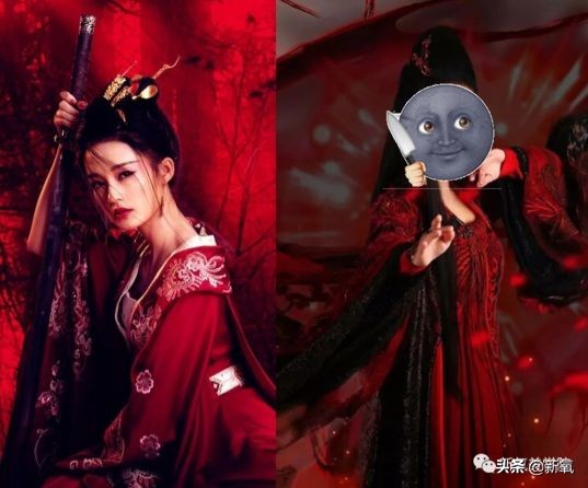 其次是清冷系有清冷系的市场,人应该发挥自己的长处,把长处做到最强,而不是用自己的短板去比别人的长板。比如凄艳有故事感的造型,赵丽颖就输给了李沁。下面这张对比图,看李沁就会觉得有一场国破家亡红颜流离最终复仇的大戏,右边就没这种故事感。