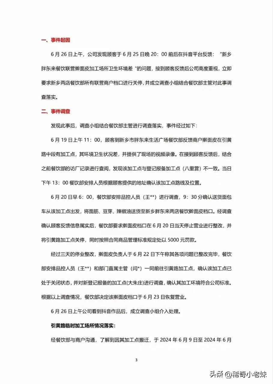 视频来源:@纵览新闻(抖音号燕赵都市报)6月26日17:57发布的《6月26日,胖东来发布:关于联营餐饮商户“擀面皮加工场所卫生环境差”的情况说明》