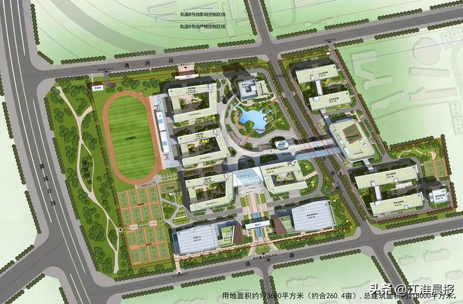 记者了解到,合肥六中新校区项目位于合肥市庐阳区蒙城路与连水路交叉口东北地块,占地面积260.4亩,总建筑面积21.8万平方米,其中地上建筑面积17.27万平方米,地下建筑面积4.53万平方米,设计规模120个教学班、6000名在校生。