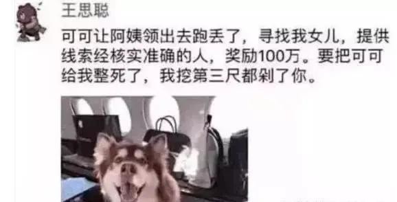 大家可能都知道王思聪十分的喜欢狗狗,而且他还有个可爱的名字叫:“王可可”有一次王可可在一次旅行中不小心丢失了,我们到知道乘坐飞机是不可以携带宠物的,但是你可能不知道这是我们思聪哥哥的私人飞机上当然他想带就带,还有值得注意的是为了找回我们的思聪的宠物小狗狗他张贴悬赏100万人民币。找到了就给100万人民币作为感谢,这是我们难以想象的金钱啊。