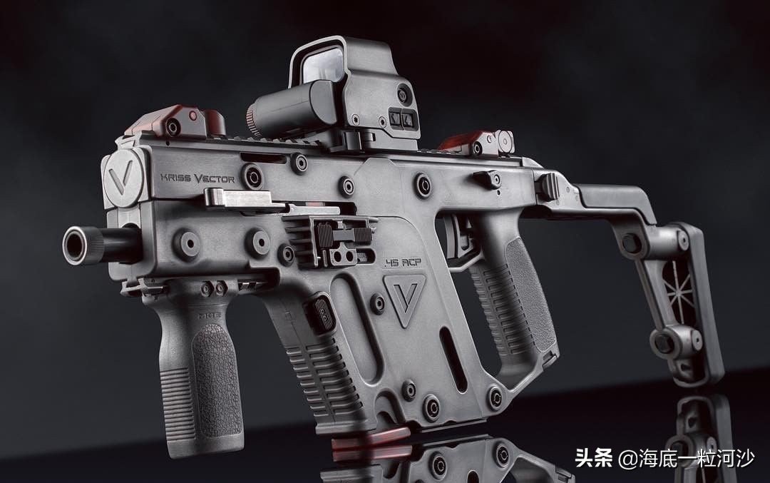 现实中KRISS Vector系列冲锋枪是由美国枪械公司“美国KRISS公司”所研制及生产的冲锋枪枪族,又译为短剑冲锋枪,发射“.45 ACP”手枪子弹。