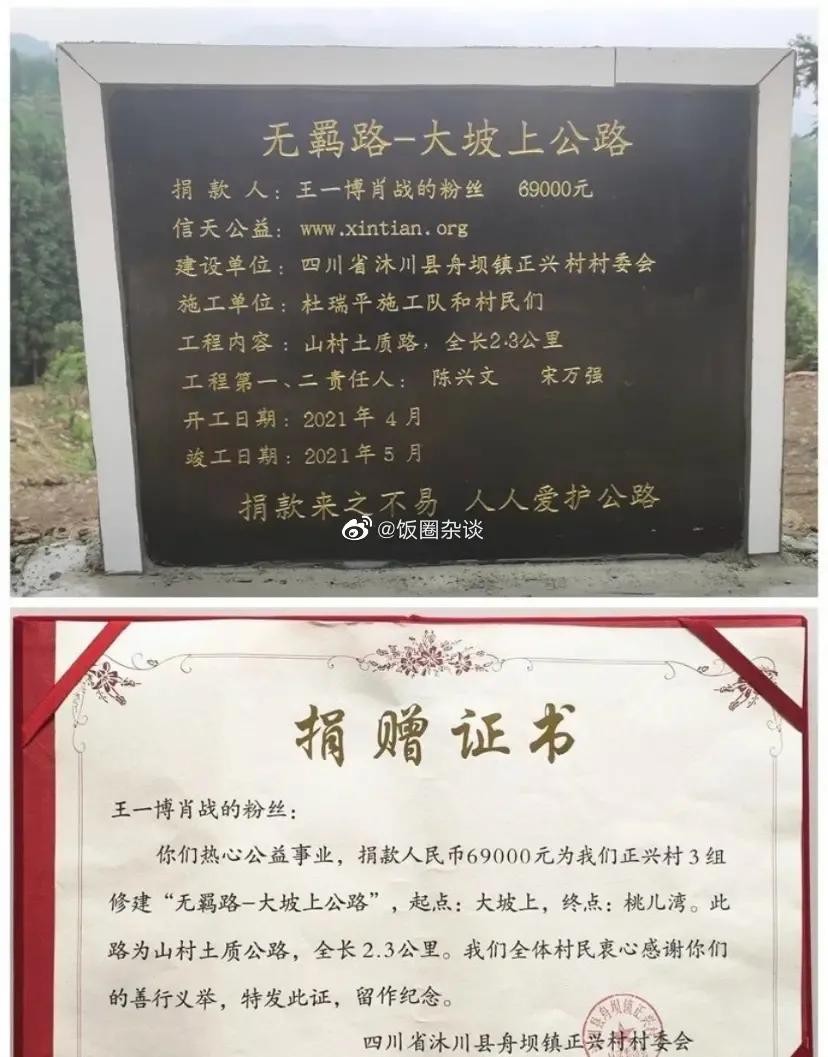 而网上爆出王一博、肖战的粉丝为运输不便的村民捐献了一条[ 无羁路太暖心了吧