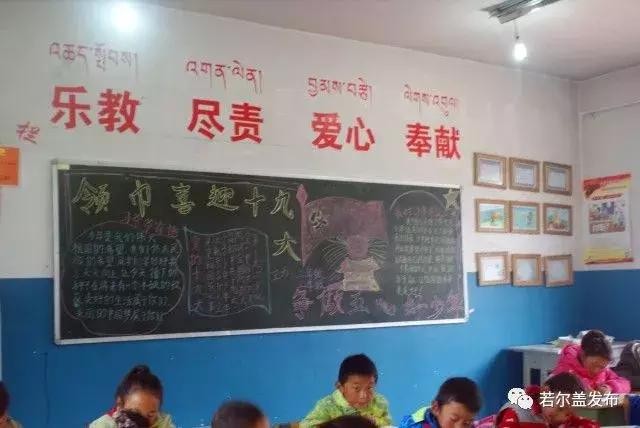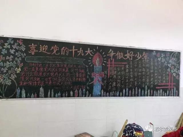 近日,在党的十九大召开前夕,若尔盖县各中小学校开展“喜迎十九大”主题队会,通过开展创作黑板报、手抄报活动,用实际行动表达对祖国美好未来祝福。