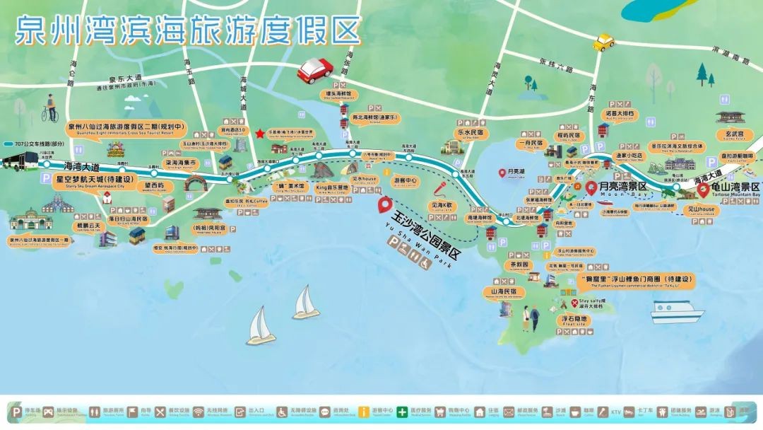 这里融合了海丝、世遗、华侨等多元文化。开发多元化文旅产品。西部核心区为泉州八仙过海欧乐堡景区,汇集“欧乐堡海洋王国、水上世界、童话世界”三大主题乐园。东部区域包括玉沙湾、月亮湾、龟山湾三个滨海景区,将分别打造泉州版“济州岛”“阿那亚”“仙人井”。