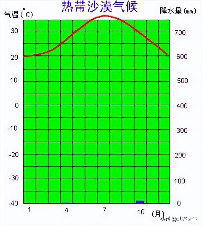 亚热带沙漠气候亚热带沙漠气候是热带沙漠气候向高纬的延伸。与热带沙漠气候的共同点:少雨、少云、日照强、气温高、蒸发旺盛。 与热带沙漠气候的不同点: 凉季气温较低,年较差比热带沙漠气候大。原因在于盛夏时气温与热带沙漠气候相似,但凉季时因纬度较高获得太阳辐射少,且有极地大陆气团侵入。 凉季有气旋雨。凉季常受温带气旋影响,8月份(南半球为2月份)热带海洋气团入侵。有少量的对流雨。 亚热带草原和沙漠气候主要分布在南, 北, 纬25°~35°的大陆西部和内陆地区, 其基本特点与热带沙漠气候相似。具体分布于:北非、约旦、叙利亚、伊拉克、美国西南部、墨西哥北部、澳大利亚南部、潘帕斯南部、巴塔哥尼亚和南非部分地区。