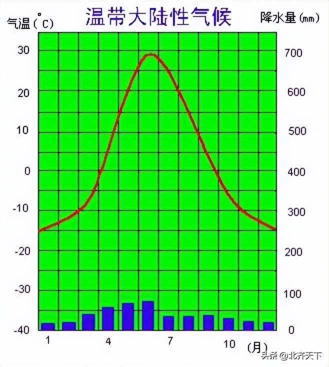 温带大陆性湿润气候温带大陆性湿润气候:位于北美大陆东部西经100°以东和亚欧大陆温带海洋性气候区的东侧。该气候在气温和降水上的变化同温带季风气候有些类似。但风力和风向的季节变化没有温带季风气候显著。冬季受气旋影响,降水比温带季风气候稍多。夏雨的集中程度没有温带季风气候显著。