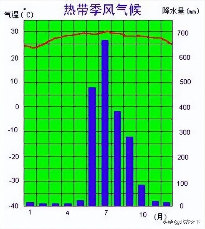 毫米,夏季较多,但无明显干季。同温带季风气候相比,季节变化基本相似,只是冬温相对
