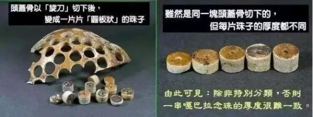 那么做嘎巴拉为何要用眉轮骨和指骨呢?在佛教中,眉轮骨那是高僧修行成就所在,而手骨那是经常持法器,数念珠,常用的骨头,这两处骨头也是高僧修行的关键,一般来说指骨的嘎巴拉要比眉轮骨的好制作,指骨切成段用绳子串起来就是嘎巴拉了,而眉轮骨异常坚硬,取下来时是不规则的形状,所以要经过手工琢磨,不但如此,嘎吧啦都是等一位喇嘛圆寂后,才会磨下一颗嘎吧啦,所以,有110颗的嘎巴拉是非常珍贵的。