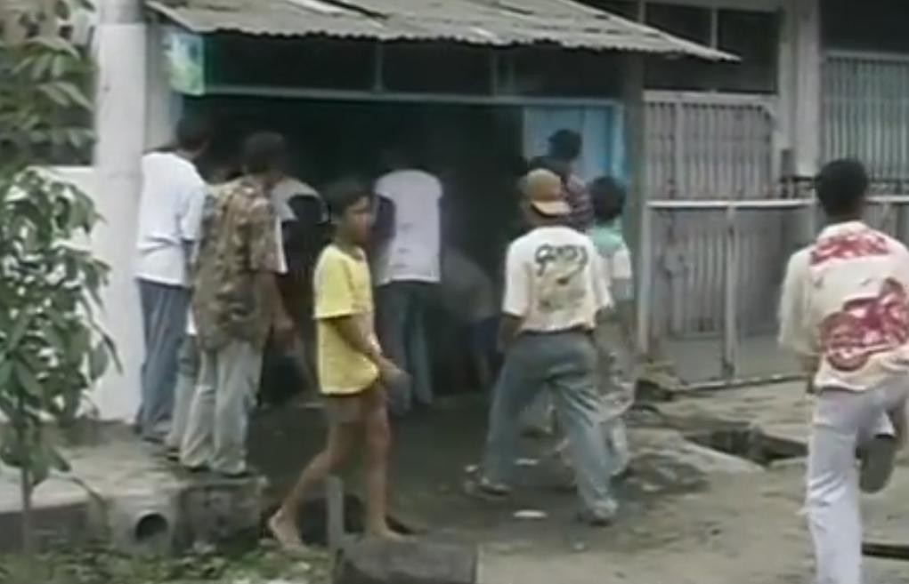 从中可以看出 女主家已经有五口人,在安保人员来了之后才敢走出房门 ,开始收拾周围的垃圾,可以想象当时他们承受多大的心理压力,当时在雅加达街头,随处可见被烧毁的房屋,这些全部都是由华人经营的商店,无一幸免。