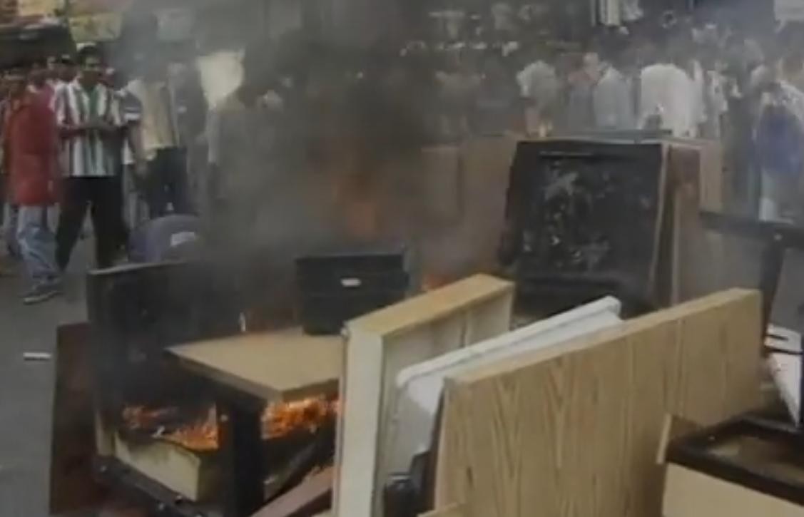 镜头中 无数当地人走上街头,只要发现华人经营的商店都被洗劫一空,无论是工厂还是企业,甚至是华人的车辆也未幸免,被当地人堆放在一起烧毁,看着眼前的一幕让人无比的痛心,然而像这种情况 在雅加达地区随处可见,此处是一家华人经营的工厂,在铁门被打开后,无数当地人涌入其中,开始疯抢里面的货物,在他们脸上看不到一丝愧疚,反而像是在欢呼一种“胜利”。