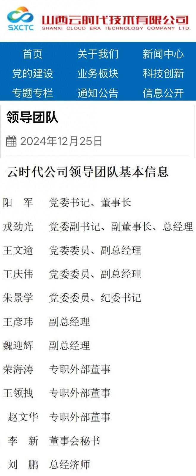此前,省委研究拟任职干部公示:戎劲光,1970年5月生,中央党校大学,中共党员,山西云时代公司党委专职副书记、副董事长,拟任省管企业正职。