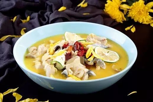 青柠菊花凌波鱼”是我原创的一道菜品。它口味酸辣,在酸汤的制作方面有独特方法,因为添加了新鲜的青柠汁和菊花,所以味道特别清香。凌波鱼是巴沙鱼的一种,属于冰鲜品。它的肉质很鲜很嫩,而且没有刺,与普通的龙利鱼相比,肉质要更筋道一些,而且是带有鱼皮的。