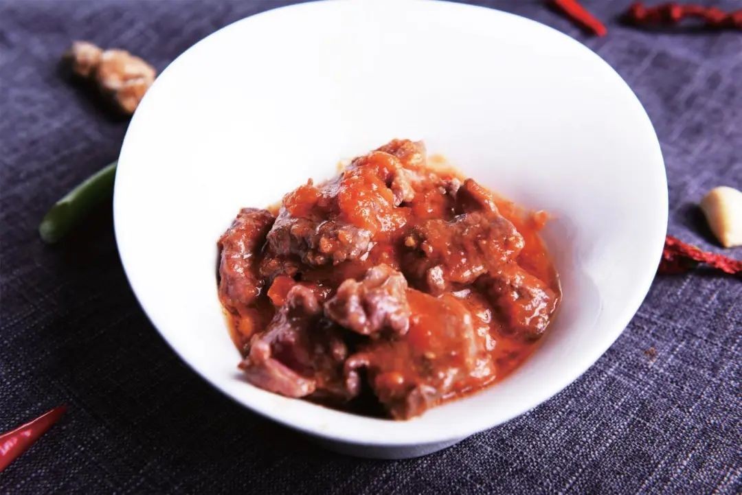 1.将牛肉切成大拇指大小的丁,漂净血水,沥水后入清水锅汆水,捞出冲净血沫,然后倒入高压锅,加入自制白卤水,加盖上汽压35分钟关火,再闷5分钟使其更入味(压牛肉时间根据牛肉质地灵活掌握)。