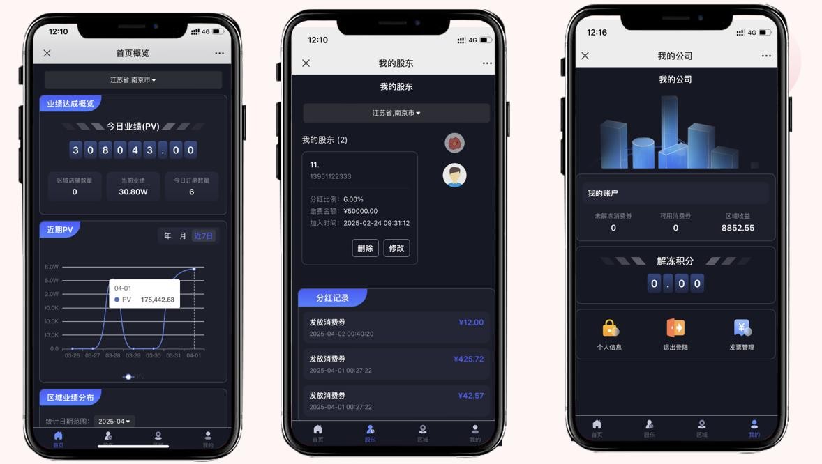 平台直接送 25 万积分,分 36 期拿回消费券,就算市场没动也能先回 25 万!成为区域公司股东,按持股比例分红。比如省代每月赚 6000 万,你占 2.52%,每月能分 150 万!还有 80% 积分冻结,等区域市场招满股东、新增积分达标就解冻,总共能拿回 120 万消费券,稳赚不赔!