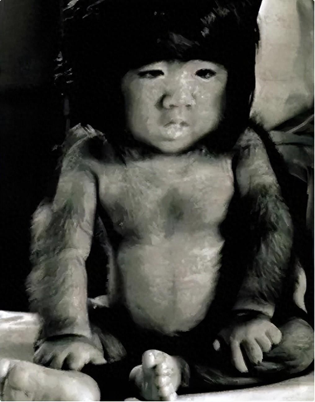 这个奇异的景象立刻在村里传开,所有的邻居闻讯赶来,都被眼前的一幕惊得目瞪口呆。他们议论纷纷,不敢相信这个满身乌黑毛发的婴儿就是人类新生儿,而像极了森林中的猿猴。