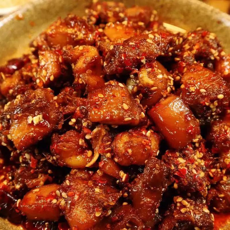 辣子鸡,堪称重庆的传统名菜,宛如一位热情奔放的江湖侠客,以香辣可口、酥脆入味的独特风味,在重庆的美食江湖中占据着重要的一席之地。选用鸡腿肉切块,这些鸡肉块就像等待出征的士兵,充满了活力。经过 20 分钟的腌制,它们充分吸收了调料的精华,仿佛穿上了一件美味的铠甲。随后,将腌制好的鸡肉块放入热油中炸至金黄酥脆,鸡肉在油锅中欢快地翻滚,如同在进行一场热烈的狂欢,逐渐变得外酥里嫩,仿佛披上了一层金色的战衣。锅中留底油,放入干辣椒、花椒炒香,干辣椒红得似火,花椒麻得过瘾,它们在油中释放出浓郁的香气,就像奏响了一曲热辣的乐章。再加入炸好的鸡肉块翻炒均匀,让每一块鸡肉都裹满辣椒和花椒的香味,每一口都能感受到鸡肉的鲜嫩与辣椒的火辣交织在一起,让人欲罢不能。