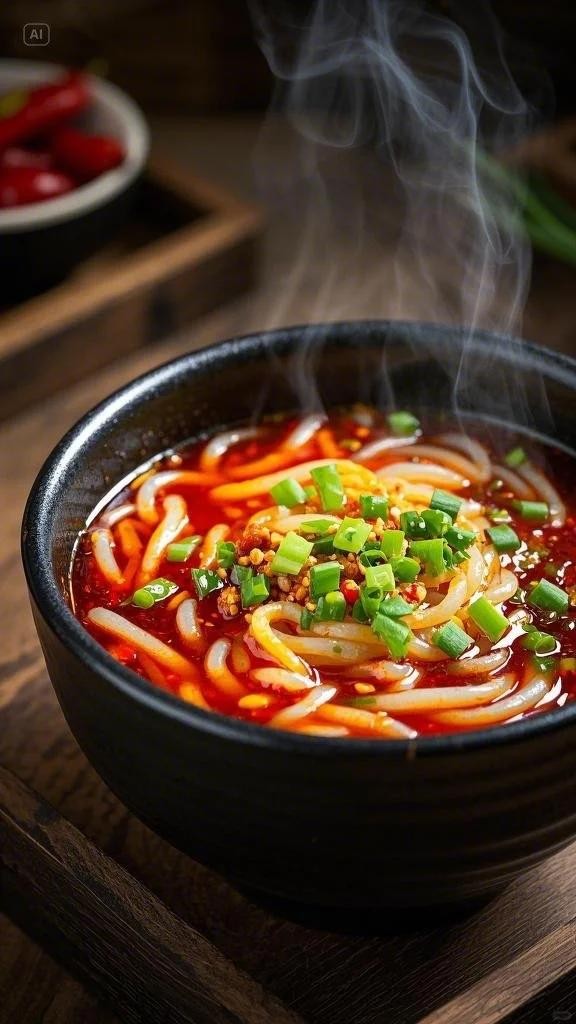 重庆酸辣粉,是重庆美食中的一颗璀璨明珠,以酸辣爽口、口感劲道的独特风味,在重庆的大街小巷中散发着迷人的魅力。选用手工粉条,这些粉条就像一条条细长的丝带,充满了韧性。搭配醋、辣椒油、豆瓣酱等调料,醋的酸像一阵清新的微风,瞬间唤醒了味蕾;辣椒油的辣像一团燃烧的火焰,点燃了食欲;豆瓣酱的醇厚,为酸辣粉增添了丰富的层次感。再加入青菜、鸡蛋等配料,青菜的翠绿、鸡蛋的嫩滑,让酸辣粉的口感更加丰富多样。