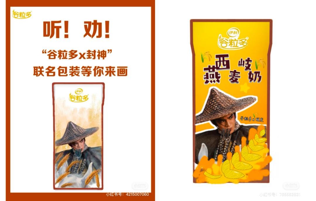 谷粒多联名《封神2》是长线布局,早在电影刚官宣定档的时候就躬身入局,把自己的名字改成了「西岐谷业」,为消费者传递品牌联名的感知。联名包装的设计是与粉丝共创,将粉丝心中的姬发,搬上包装,联名周边也是众望所归。至于TVC,于适曾在节目中开拖拉机,给人留下深刻印象,粉丝强烈呼吁重现这一幕,便有了销冠小于熟练驾驶拖拉机的镜头。