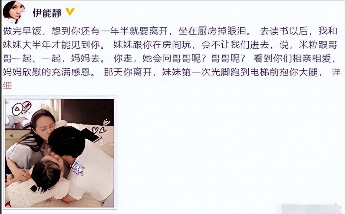2018年11月,伊能静发文称儿子还有半年就要离开了,文中还写到女儿对哈利也很舍不得,配图是一张母子三人的照片。